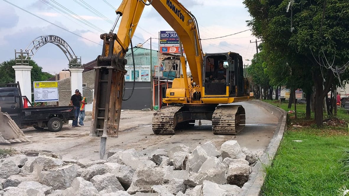 Foto : Alat berat bekerja : Dinas SDABMBK Kabupaten Bekasi Perbaiki Jalan Utama Tegal Danas