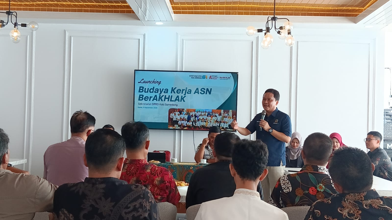 Sumedang, WIPNET – Sekretariat DPRD Kabupaten Sumedang menggelar kegiatan Launching Budaya Kerja ASN BerAKHLAK sebagai upaya percepatan transformasi Aparatur Sipil Negara (ASN) di lingkungan kerjanya. Kegiatan berlangsung di café Sekretariat DPRD Kabupaten Sumedang pada Kamis (11/9/2025).
