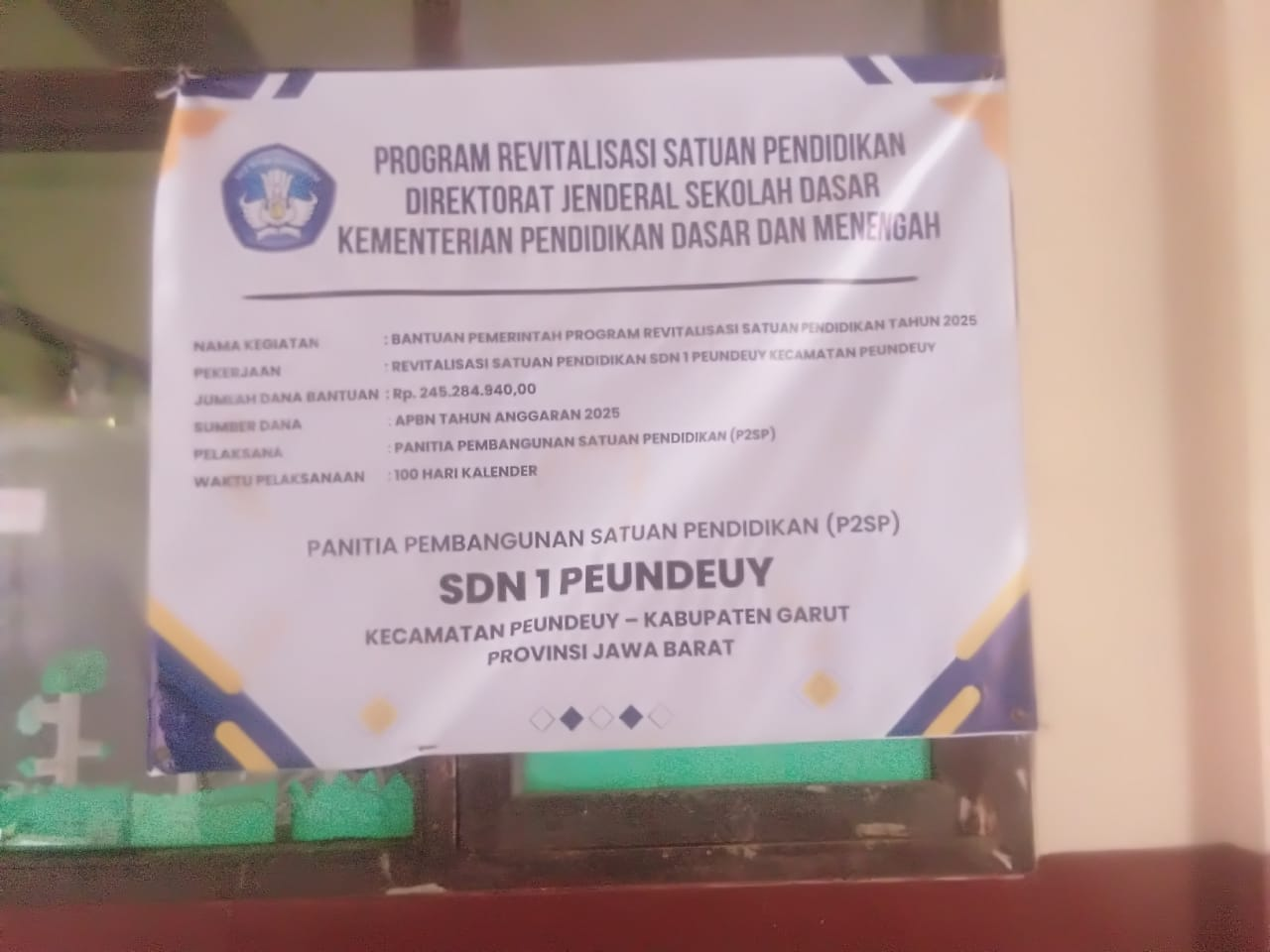 Garut, WIPNET — SDN 1 Peundeuy, Kecamatan Peundeuy, Kabupaten Garut, menjadi salah satu sekolah yang menerima Bantuan Pemerintah Program Revitalisasi Satuan Pendidikan Tahun 2025 dari Direktorat Jenderal Sekolah Dasar, Kementerian Pendidikan Dasar dan Menengah.