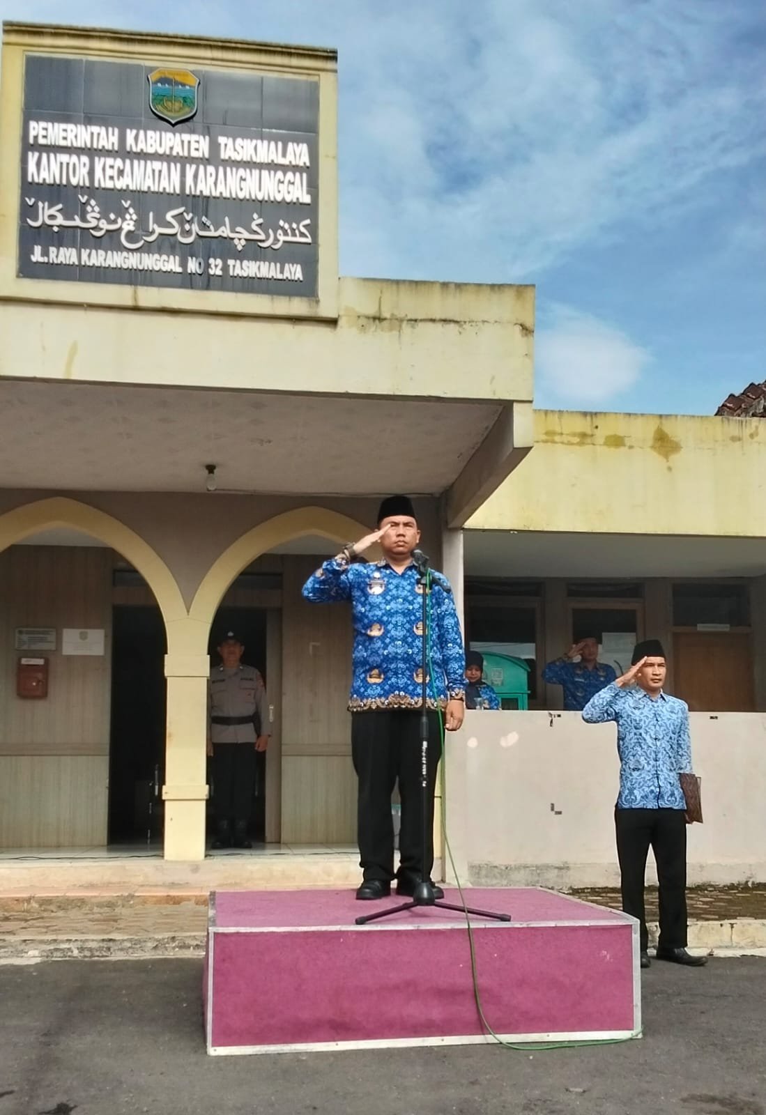 Bertindak sebagai inspektur upacara adalah Camat Karangnunggal, Beliau dalam amanatnya, mengajak seluruh peserta untuk mengenang jasa para pahlawan yang telah gugur memperjuangkan kemerdekaan Indonesia. “Kita sebagai generasi penerus bangsa harus melanjutkan perjuangan para pahlawan dengan cara mengisi kemerdekaan melalui karya nyata,” ujarnya.
